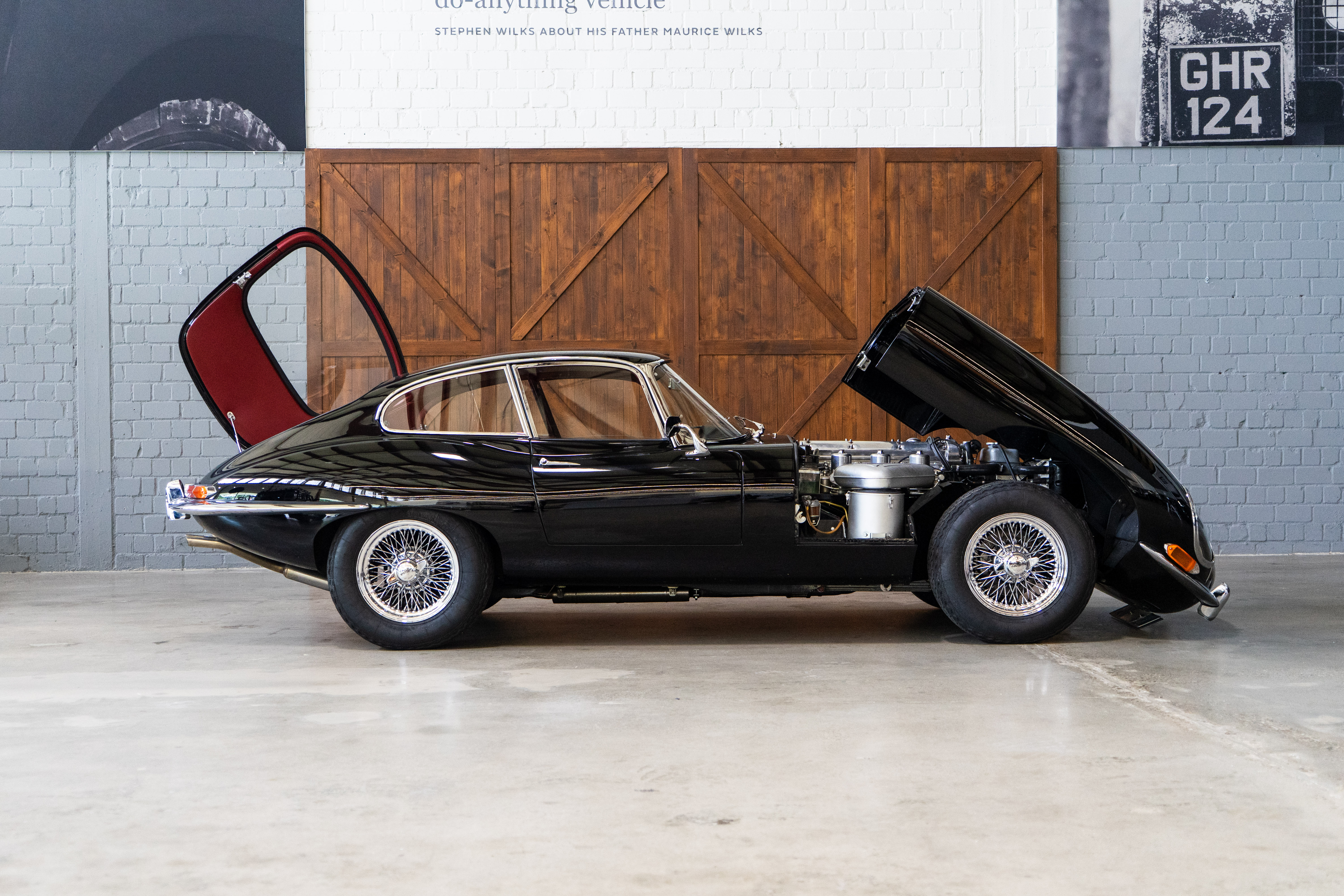 The chosen colour scheme - black exterior over a red interior - is both striking and period‑correct. From 2013 to 2025, the car was driven regularly and maintained meticulously, with no expense spared. The result is a truly exceptional E‑type, even for taller enthusiasts.