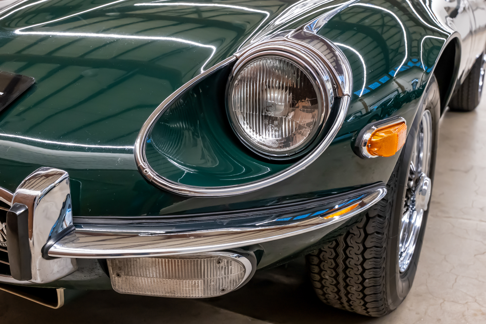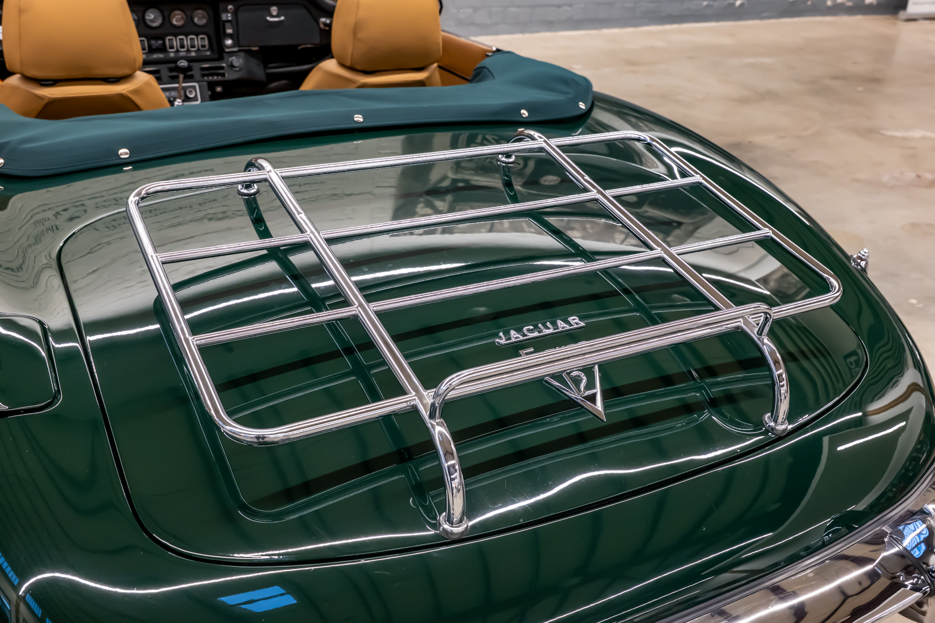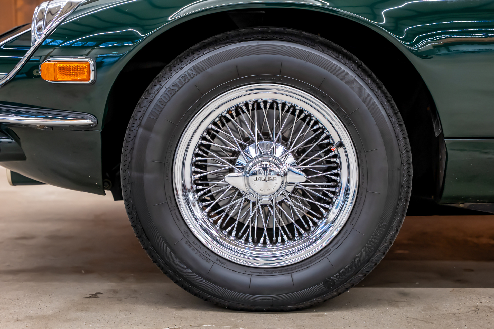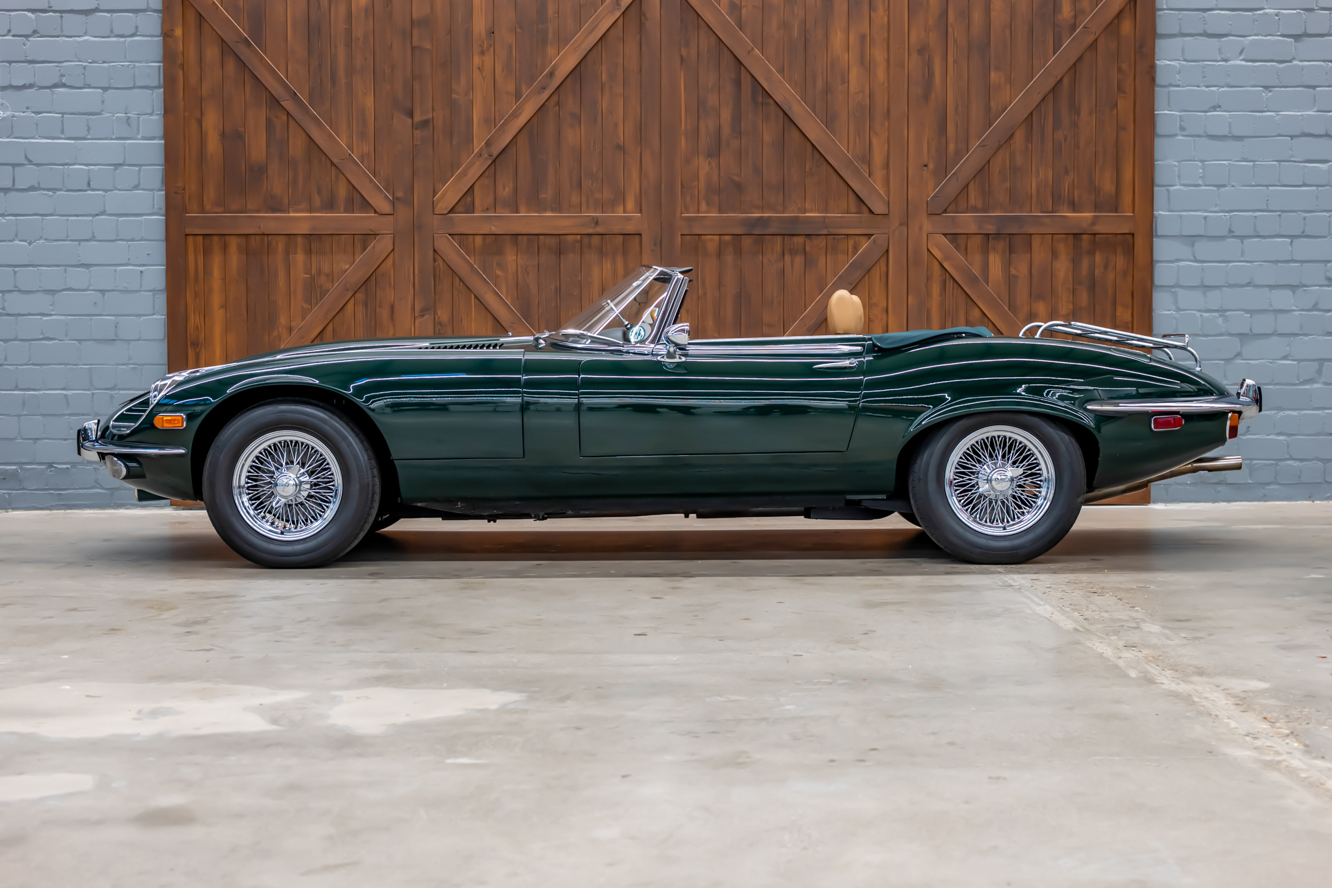 This Jaguar E‑Type Series 3 pairs iconic design with the smooth power of a 5.3‑litre V12 engine, manual transmission, and air conditioning — one of the most desirable specifications.