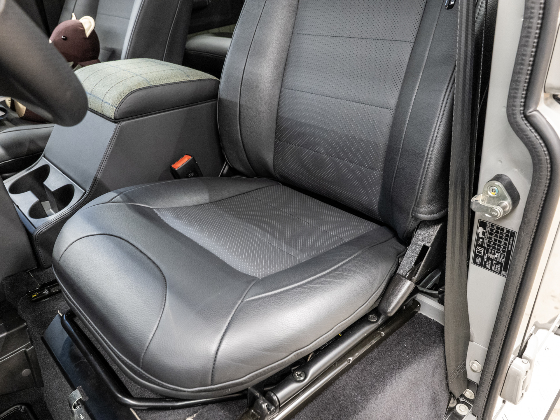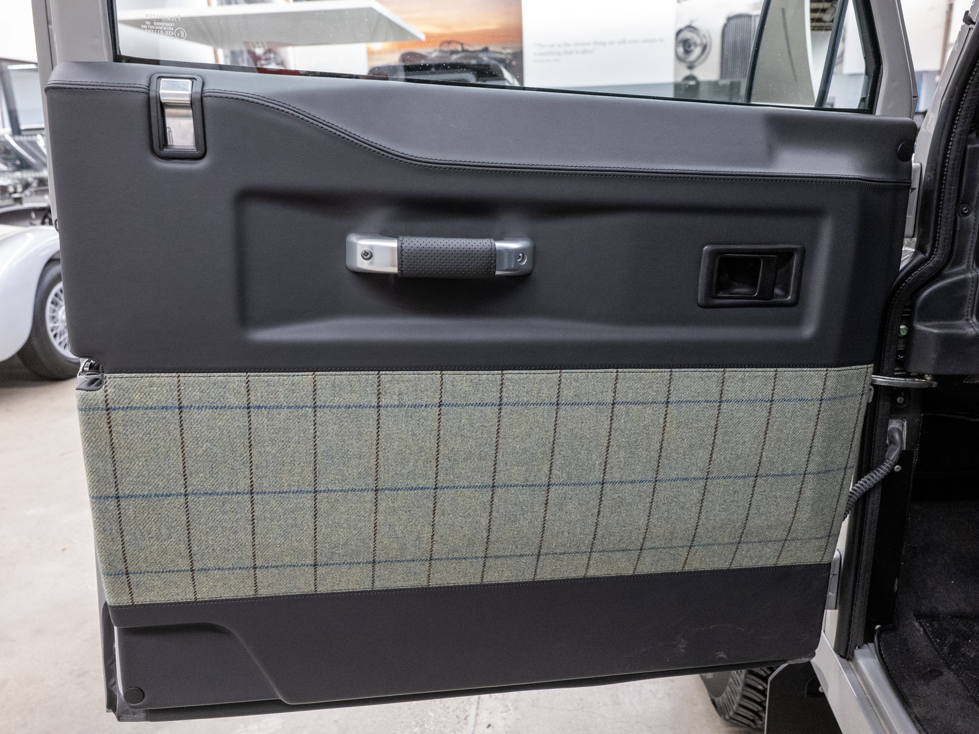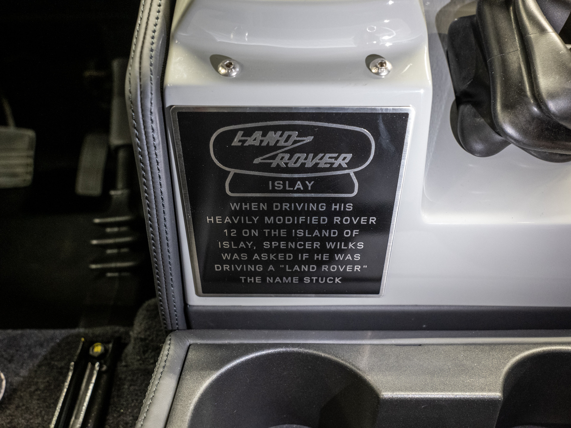 Inside, every detail reflects a deep connection to Islay. The seats, door trims, centre armrest and sun visor are upholstered in a tactile tweed woven by the Islay Woollen Mill. Its natural palette blends blue for sea and sky, purple for the island’s heather and a soft yellow inspired by the peat landscape. A plaque beside the gear selector tells the story of how the Land Rover name came to be, adding a subtle but meaningful link to the brand’s origins.