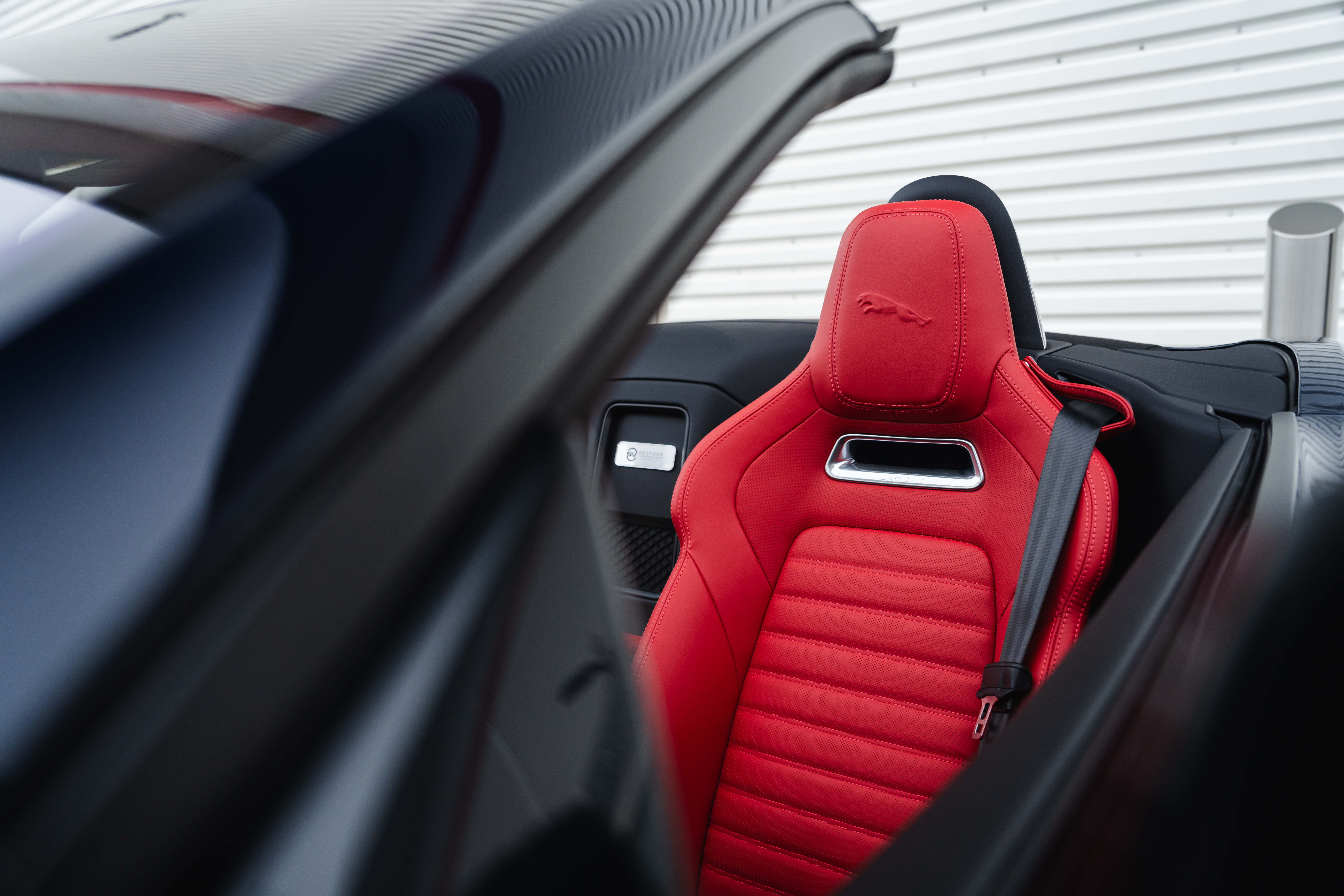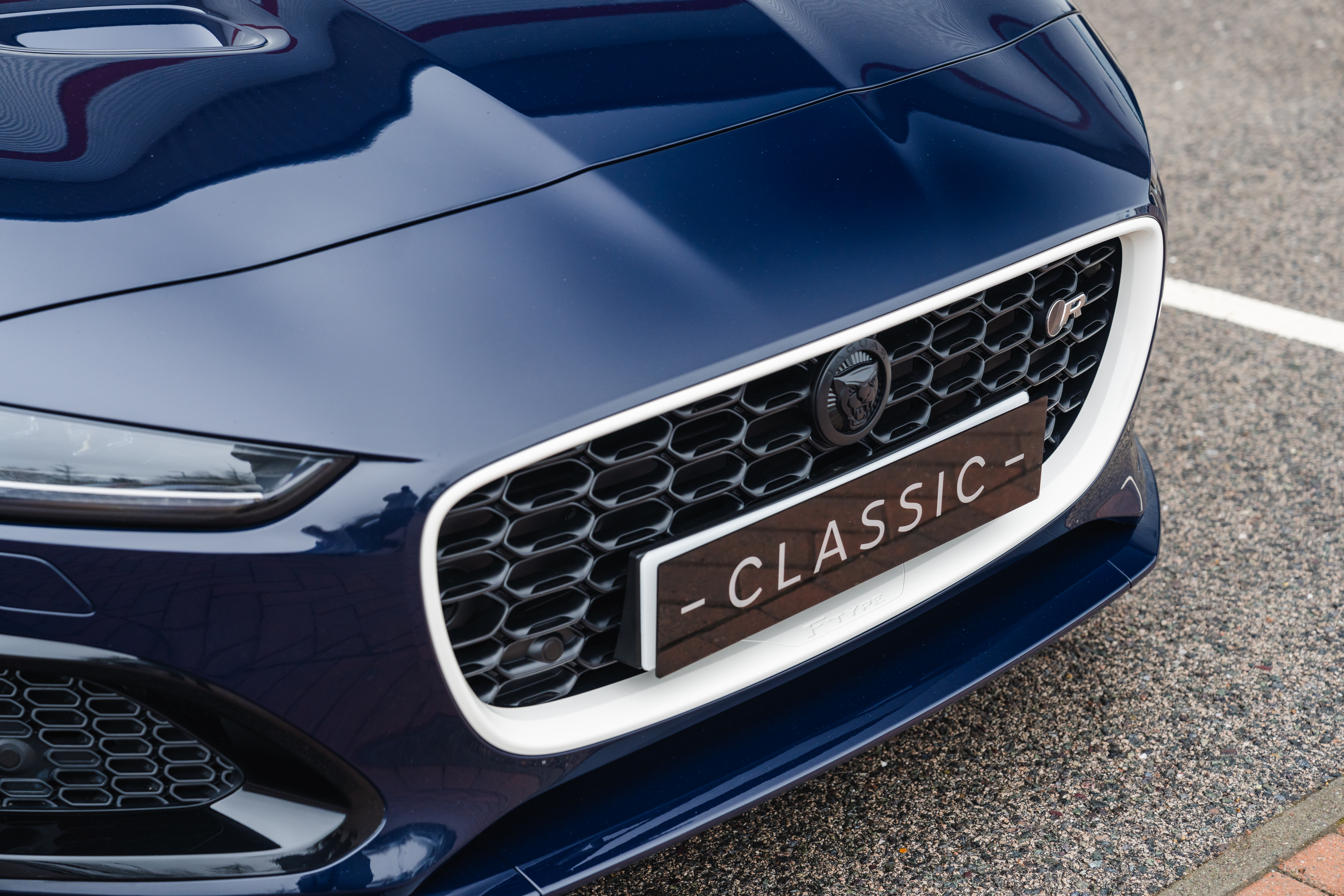 As Jaguar embarks on the boldest transformation in its history to become a modern luxury all electric brand, this car stands as an unrepeatable celebration of Jaguar’s internal combustion sports car provenance. F TYPE has captivated sports car drivers for more than a decade, just as the E type did five decades before it. The ZP Edition was the ultimate celebration of that lineage, joining an illustrious roster of heritage inspired collector’s editions including the 2015 Project 7 and the 2020 Heritage 60 Edition. Two F TYPE ZP Edition colourways were offered, recalling the first race winning ‘Project ZP’ E types campaigned shortly after the model’s launch in 1961: Oulton Blue Gloss paint with a Mars Red and Ebony duotone leather interior, or Crystal Grey Gloss paint with a Navy Blue and Ebony duotone leather interior. Both featured Porcelain White Gloss hand painted racing style roundels on the doors and Porcelain White Gloss grille surrounds. Unique interiors with horizontal seat fluting, along with Gloss Black exterior accents and Gloss Black brake calipers, complemented exclusive F TYPE ZP Edition branding on the fenders, Gloss Black Diamond Turned 20 inch forged alloy wheels, tread plates and dashboard. Each car carried a ‘One of 150’ SV Bespoke commissioning plaque.