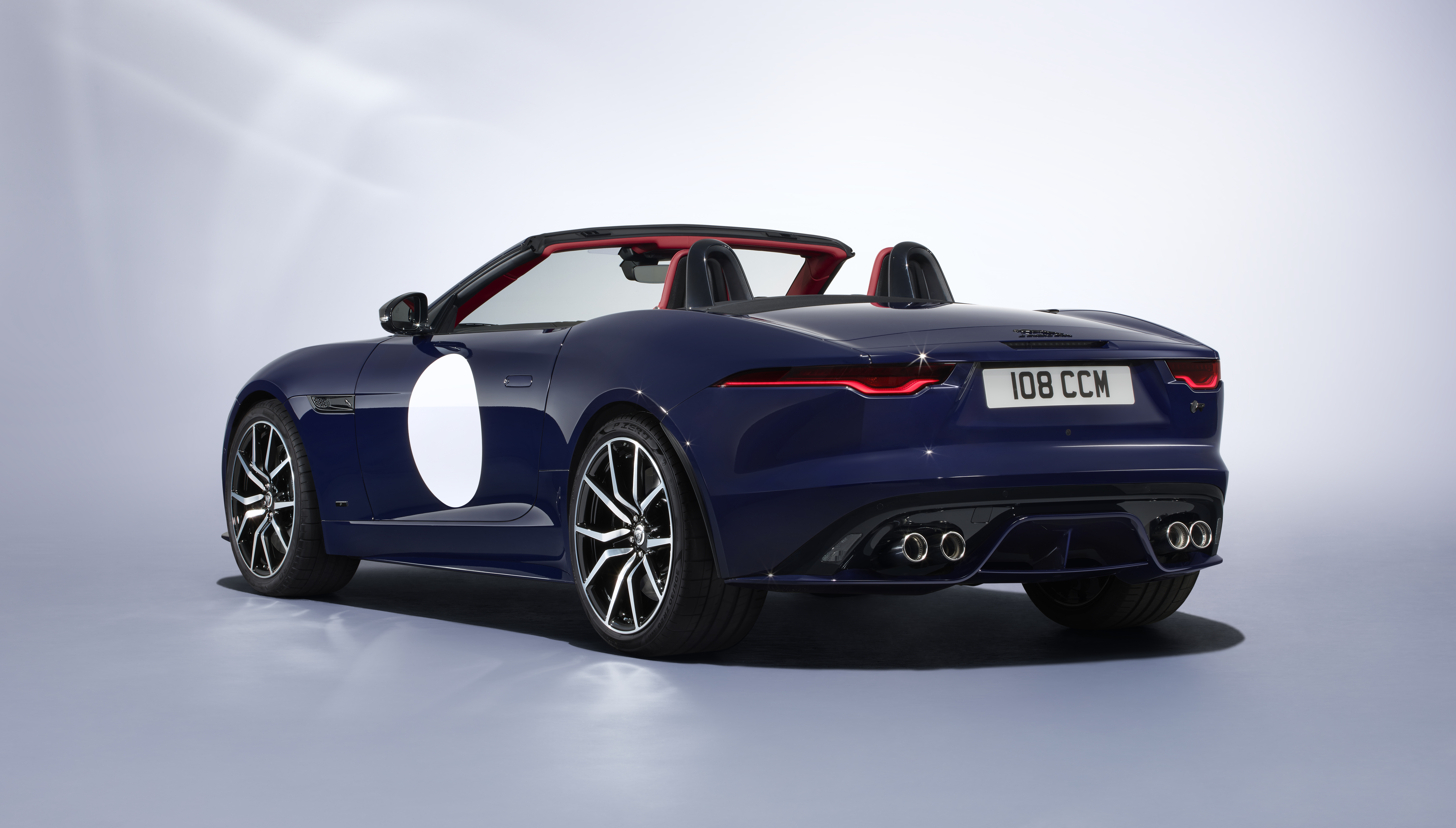 Two F‑TYPE ZP Edition colourways are available, recalling the first race‑winning ‘Project ZP’ E‑types campaigned shortly after the model’s launch in 1961: Oulton Blue Gloss paint with Mars Red and Ebony duotone leather interior, or Crystal Grey Gloss paint with Navy Blue and Ebony duotone leather interior. Both feature Porcelain White Gloss hand‑painted racing‑style roundels on the doors and Porcelain White Gloss grille surrounds. Unique interiors with horizontal seat fluting, plus Gloss Black exterior accents and Gloss Black brake calipers, complement exclusive F TYPE ZP Edition branding details on the fenders, Gloss Black Diamond Turned 20 inch forged alloy wheels, tread plates and dashboard. Each car features a ‘One of 150’ SV Bespoke commissioning plaque.