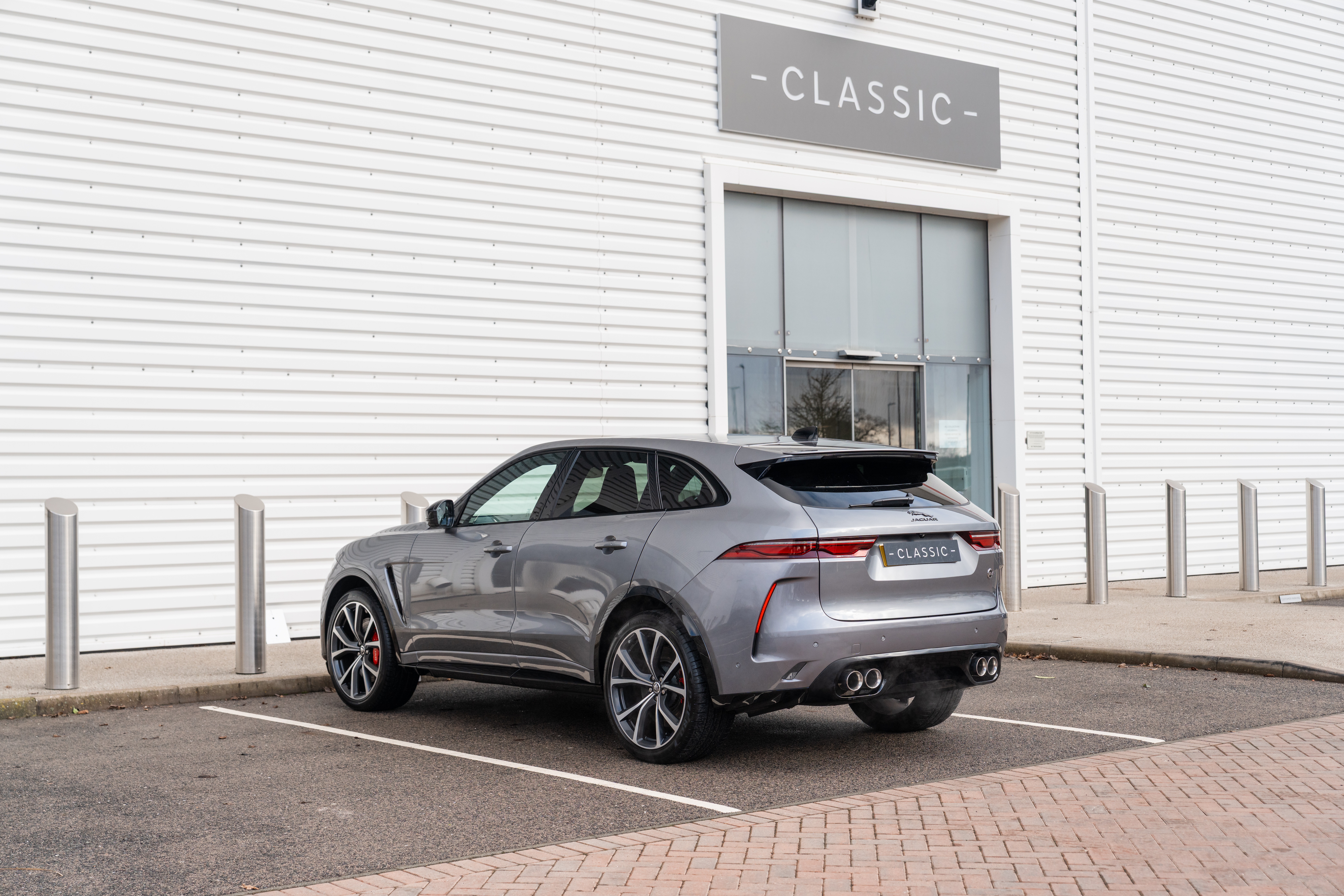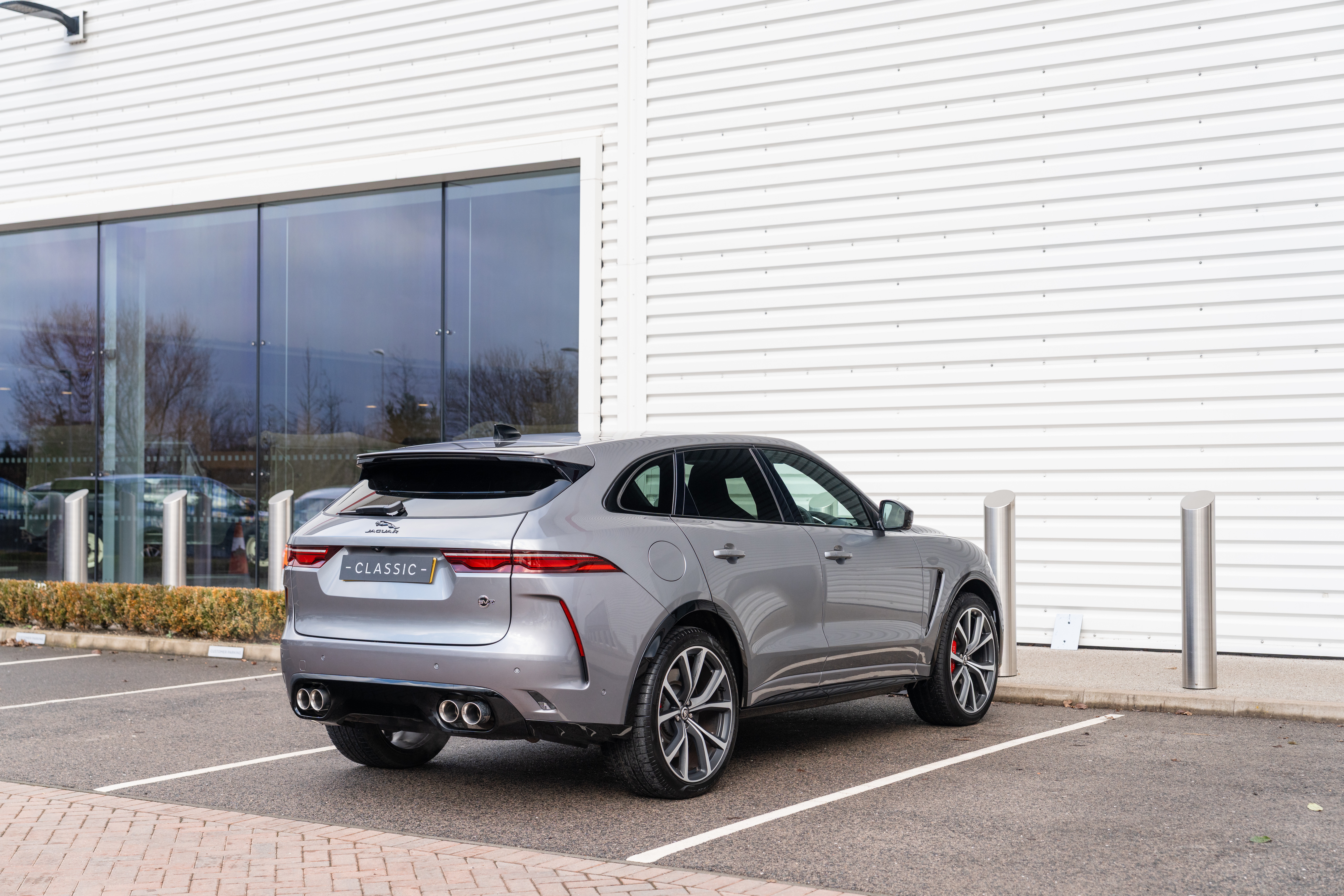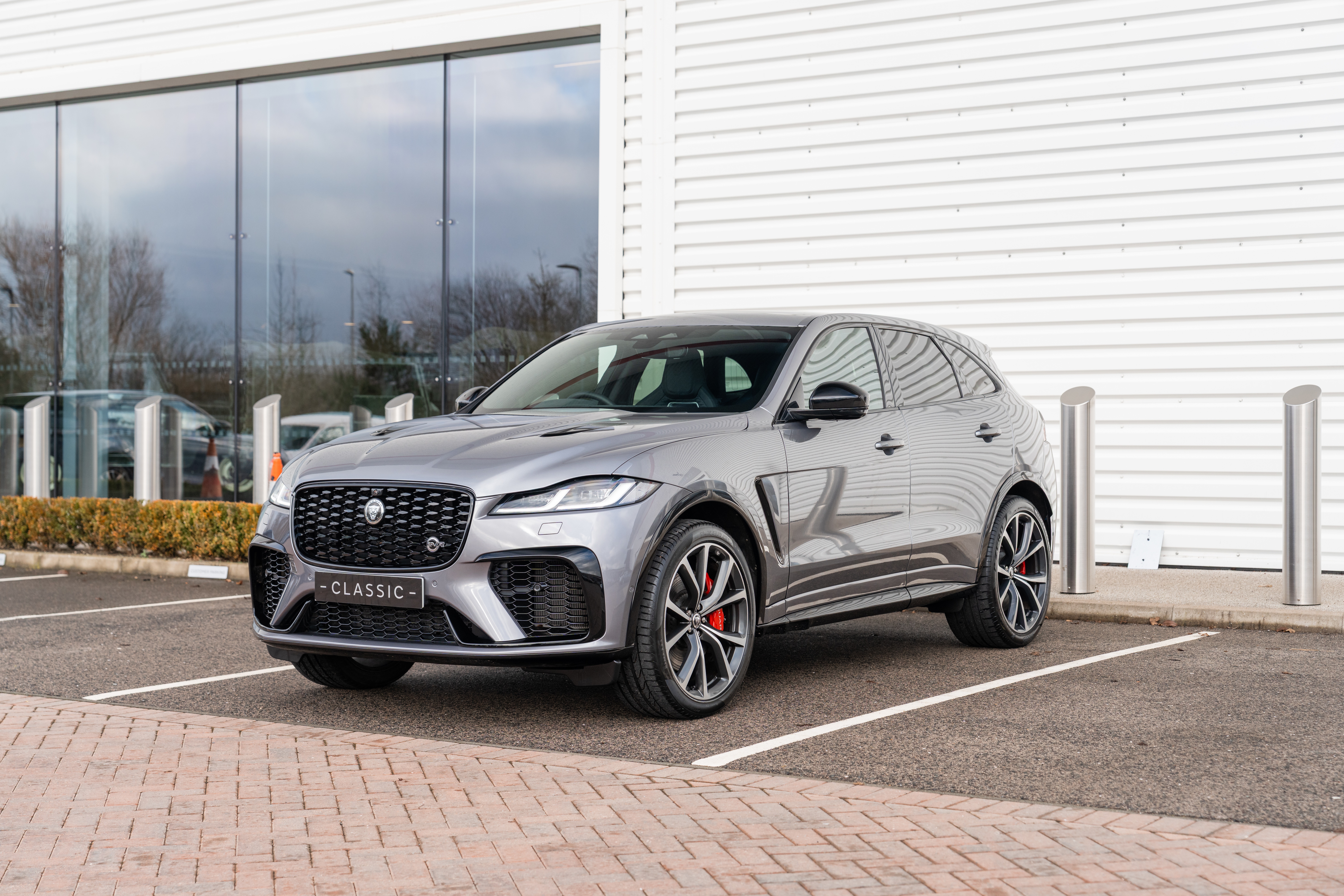 The F PACE SVR has performance at its heart, powered by Jaguar’s characterful 5.0 litre supercharged V8. The SVR 575 Edition, with its power increase of 25PS, to 575PS, makes it the most powerful F PACE ever, providing a unique blend of performance and excitement. With 700Nm of torque, it can accelerate from 0 60mph in just 3.8 seconds (0 100km/h in 4.0 seconds). The SVR 575 Edition benefits from unique SVR bodywork with a performance optimised front bumper, Black Exterior Pack with black grille surround and bonnet louvres, and SVR rear bumper with black detailing. The SVR 575 Edition also features 22 inch forged alloy wheels with Diamond Turned finish and Satin Technical Grey contrast. The car for sale here is finished in Eiger Grey with Ebony Windsor leather Performance seats. It has covered less than four thousand five hundred miles and has been part of the Jaguar fleet since new. It is available directly from Jaguar Classic, and comes with the balance of its three year warranty (until August 2027).