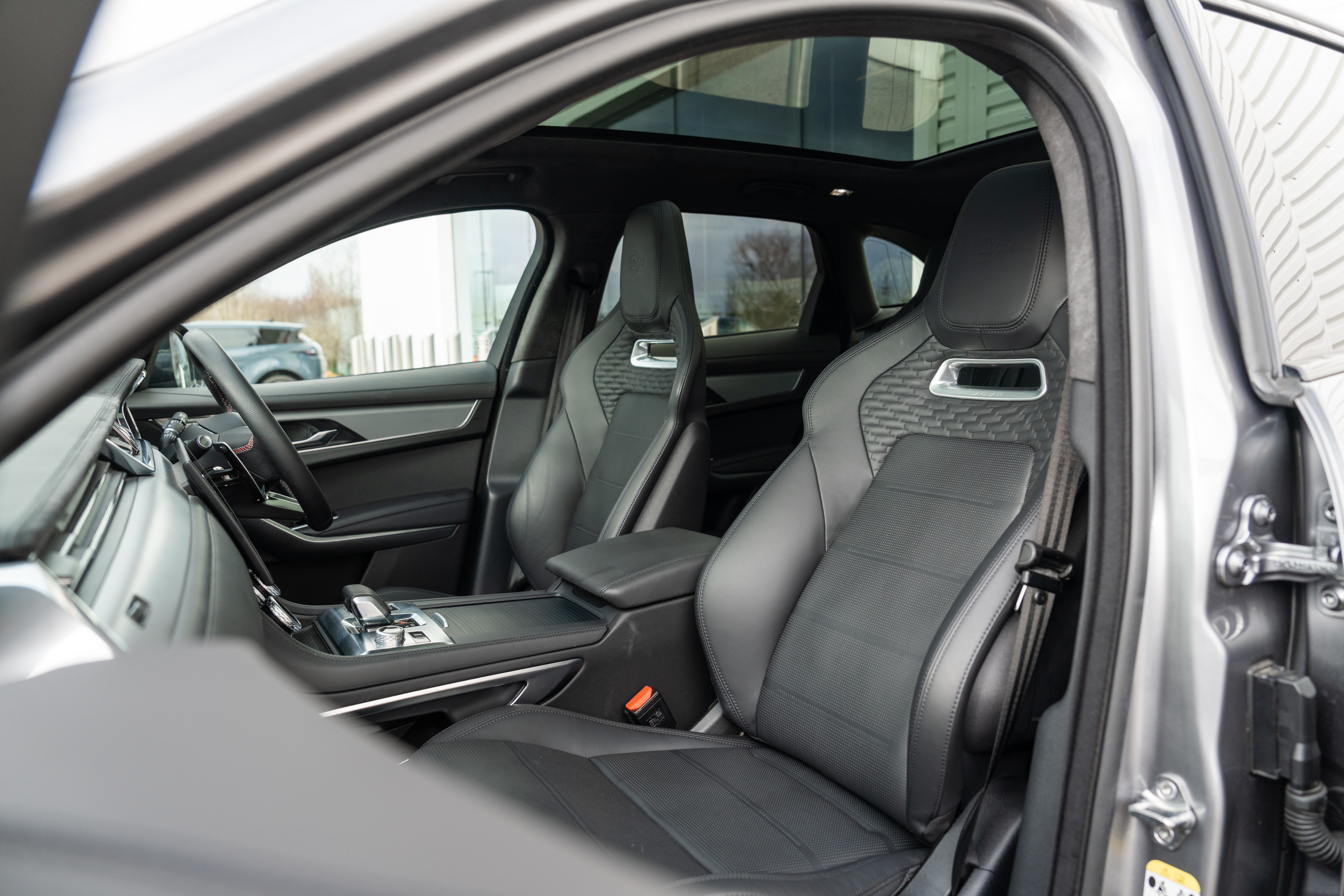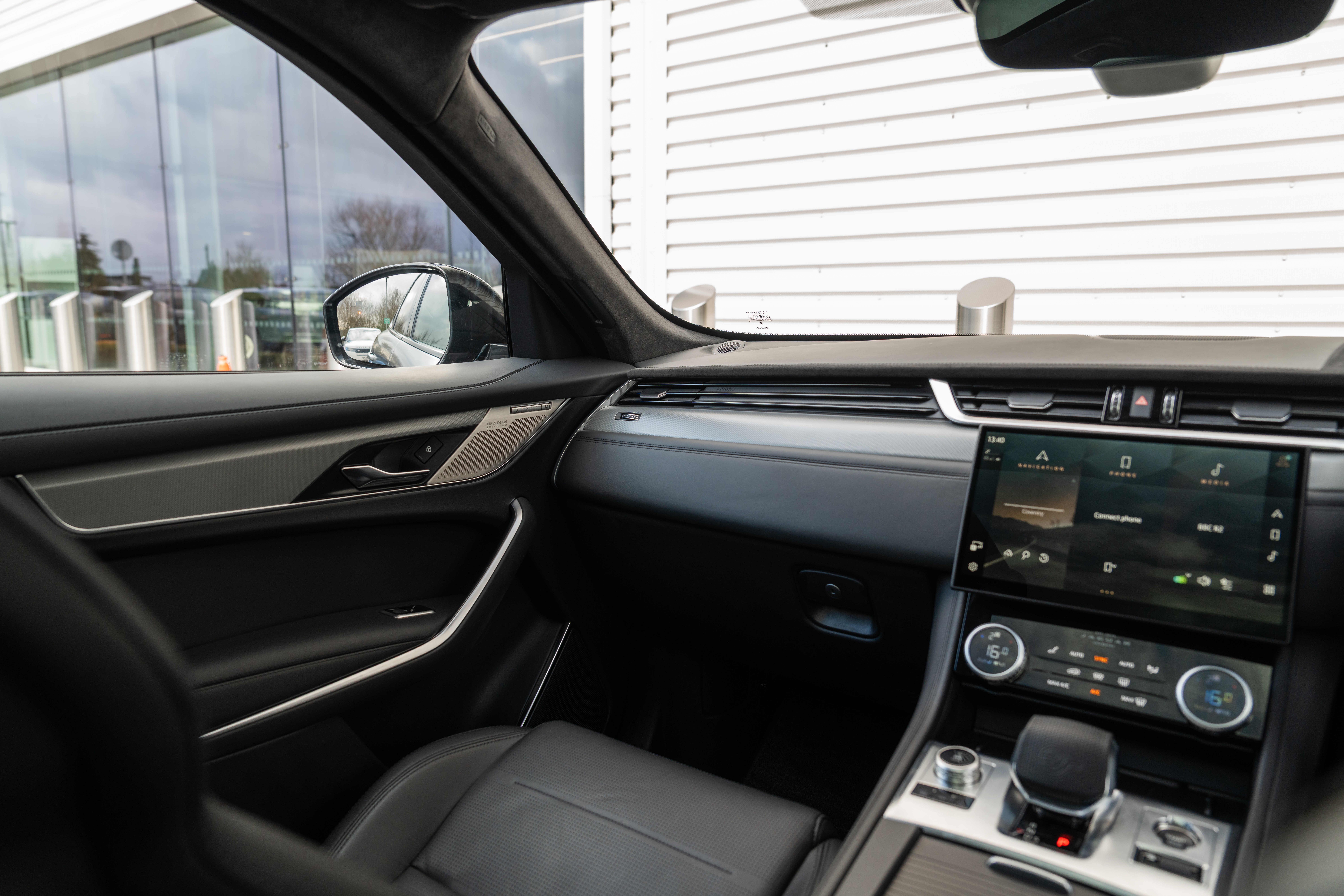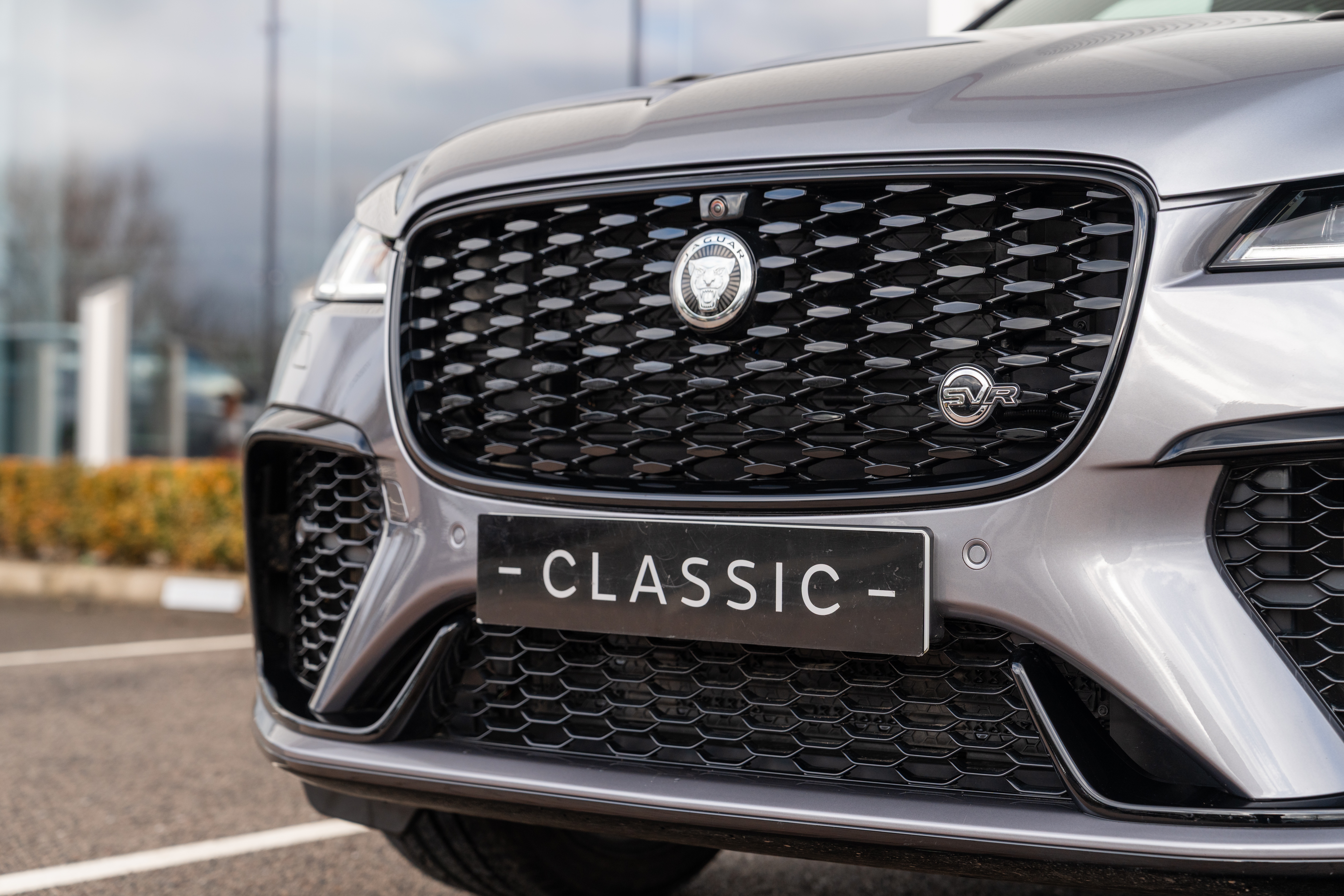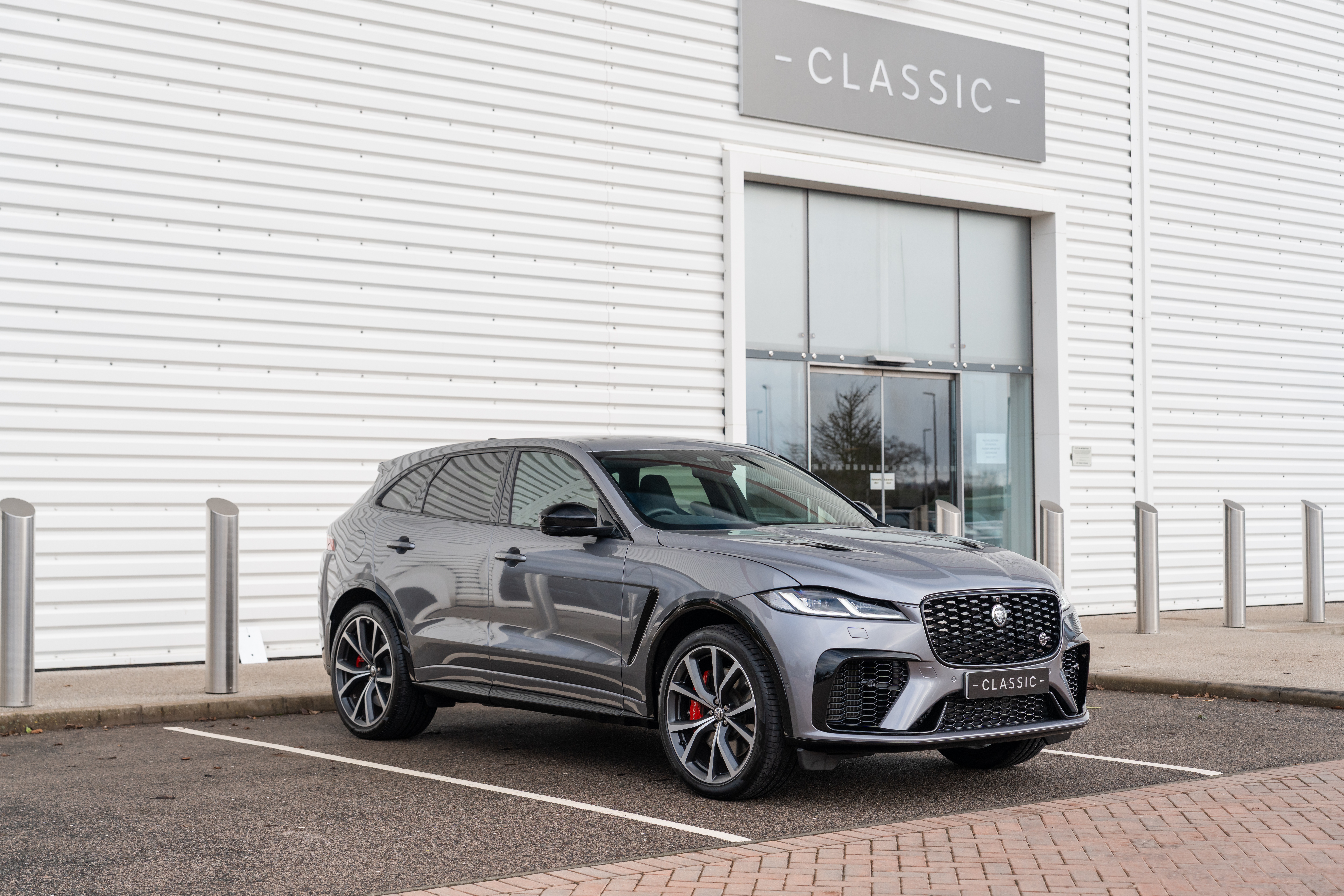 The F PACE SVR has performance at its heart, powered by Jaguar’s characterful 5.0 litre supercharged V8. The SVR 575 Edition, with its power increase of 25PS, to 575PS, makes it the most powerful F PACE ever, providing a unique blend of performance and excitement. With 700Nm of torque, it can accelerate from 0 60mph in just 3.8 seconds (0 100km/h in 4.0 seconds). The SVR 575 Edition benefits from unique SVR bodywork with a performance optimised front bumper, Black Exterior Pack with black grille surround and bonnet louvres, and SVR rear bumper with black detailing. The SVR 575 Edition also features 22 inch forged alloy wheels with Diamond Turned finish and Satin Technical Grey contrast. The car for sale here is finished in Eiger Grey with Ebony Windsor leather Performance seats. It has covered less than four thousand five hundred miles and has been part of the Jaguar fleet since new. It is available directly from Jaguar Classic, and comes with the balance of its three year warranty (until August 2027).