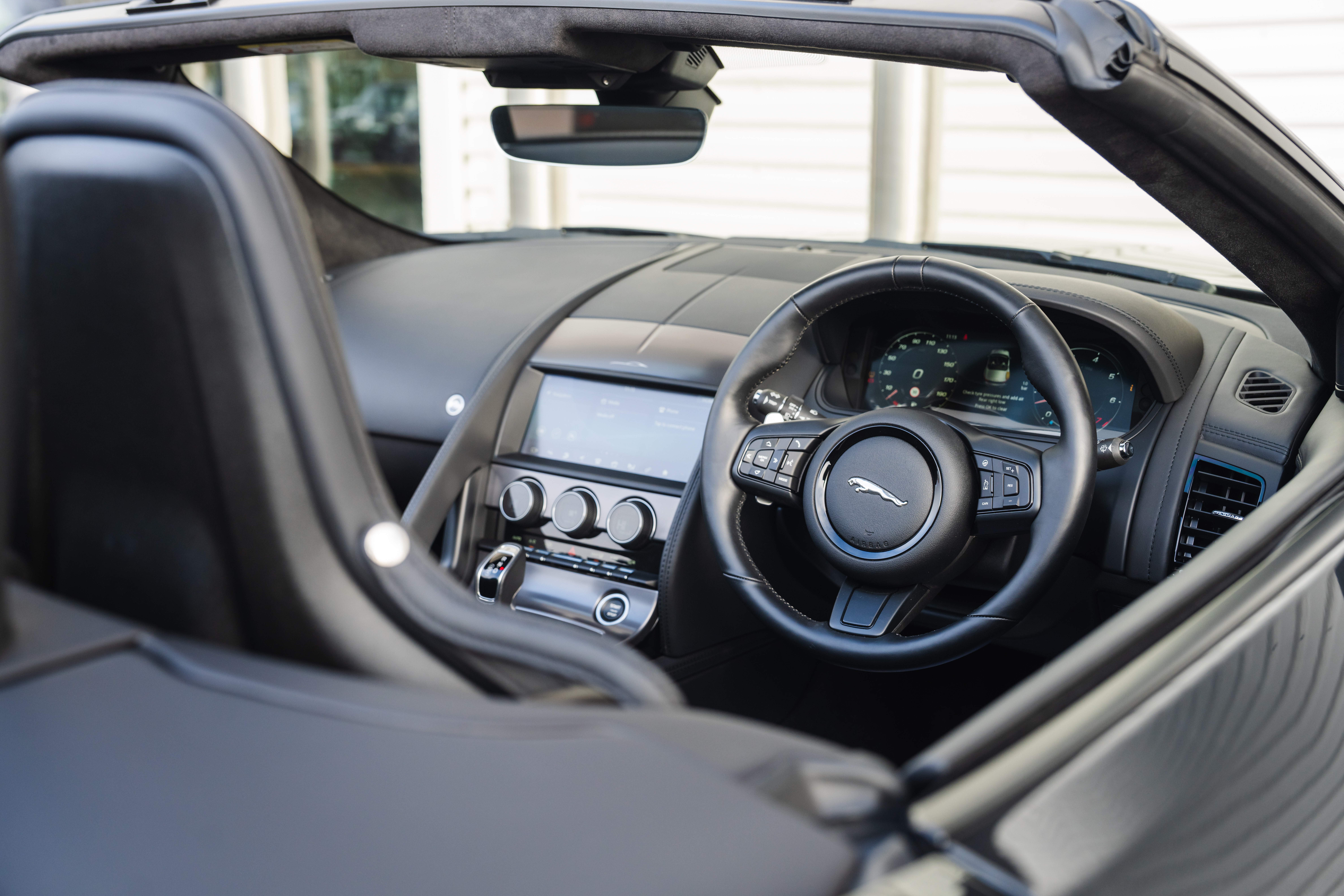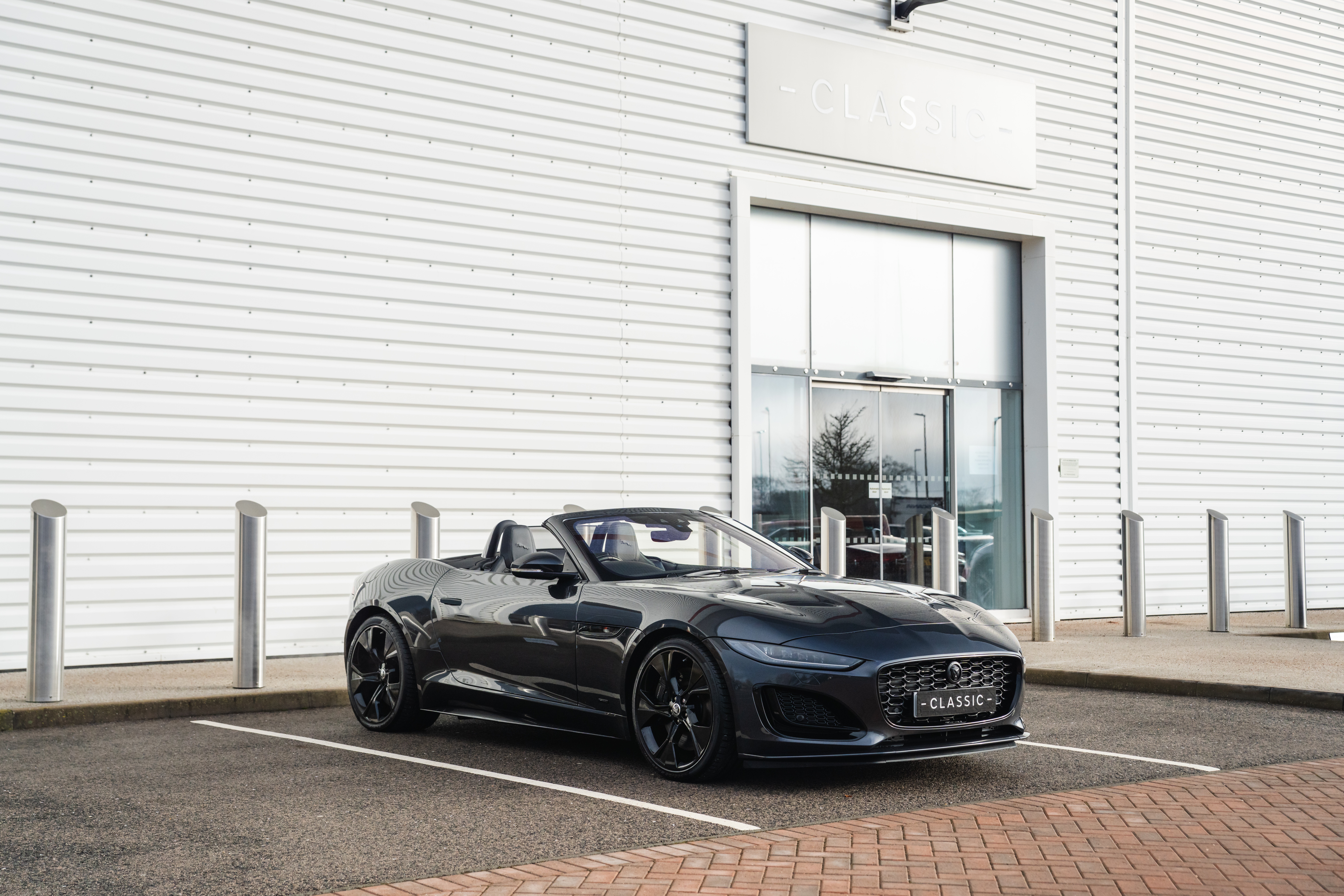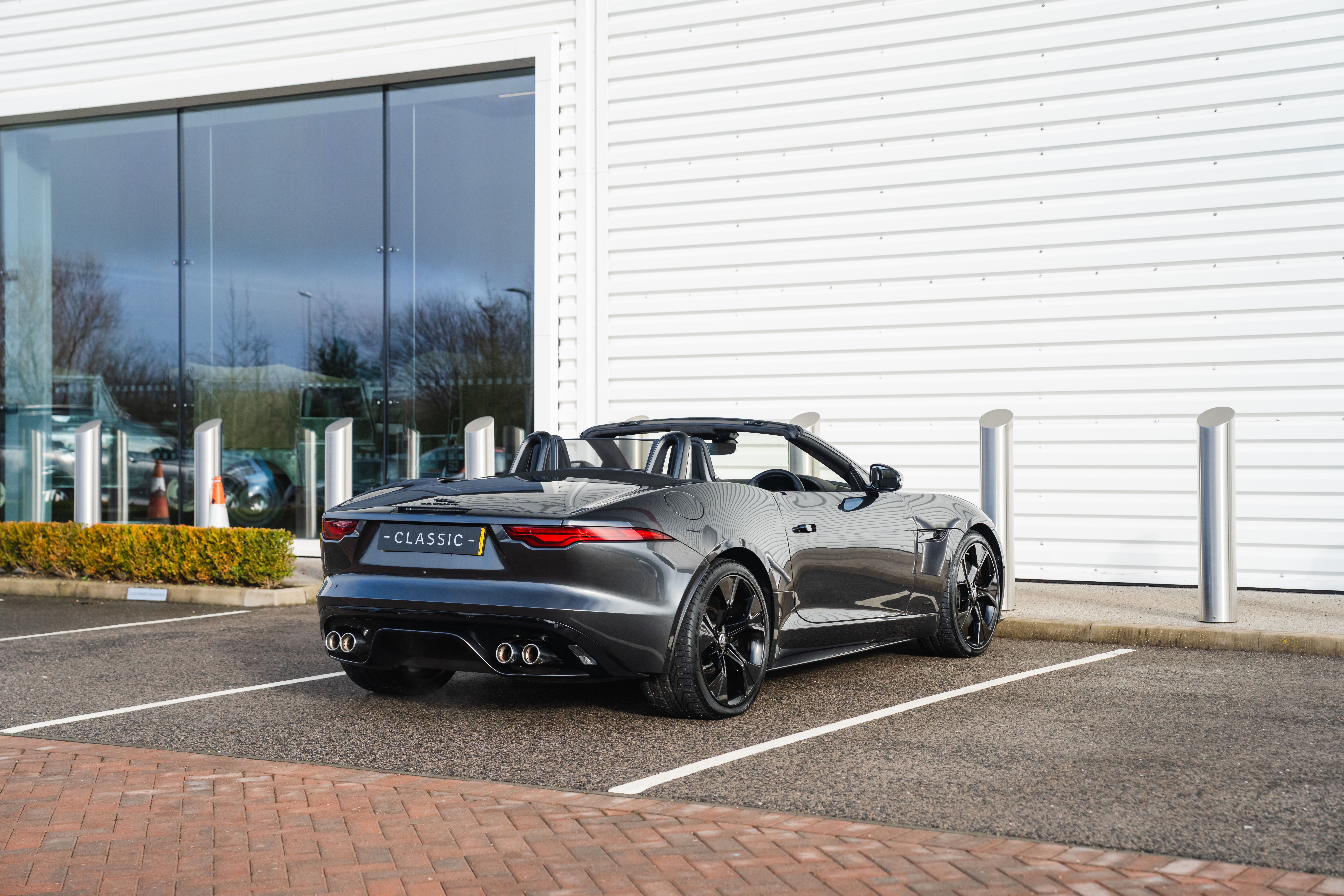 This particular vehicle is the F-type R 75 roadster, featuring the 450 PS 5.0 V8 engine. Finished in Carpathian Grey metallic paint with Ebony Windsor leather interior the car has covered just under eight thousand miles. The vehicle has been retained by JLR from new and is now available to purchase, directly from Jaguar Classic. The car comes with the balance of the Jaguar three-year warranty (until March 2027).