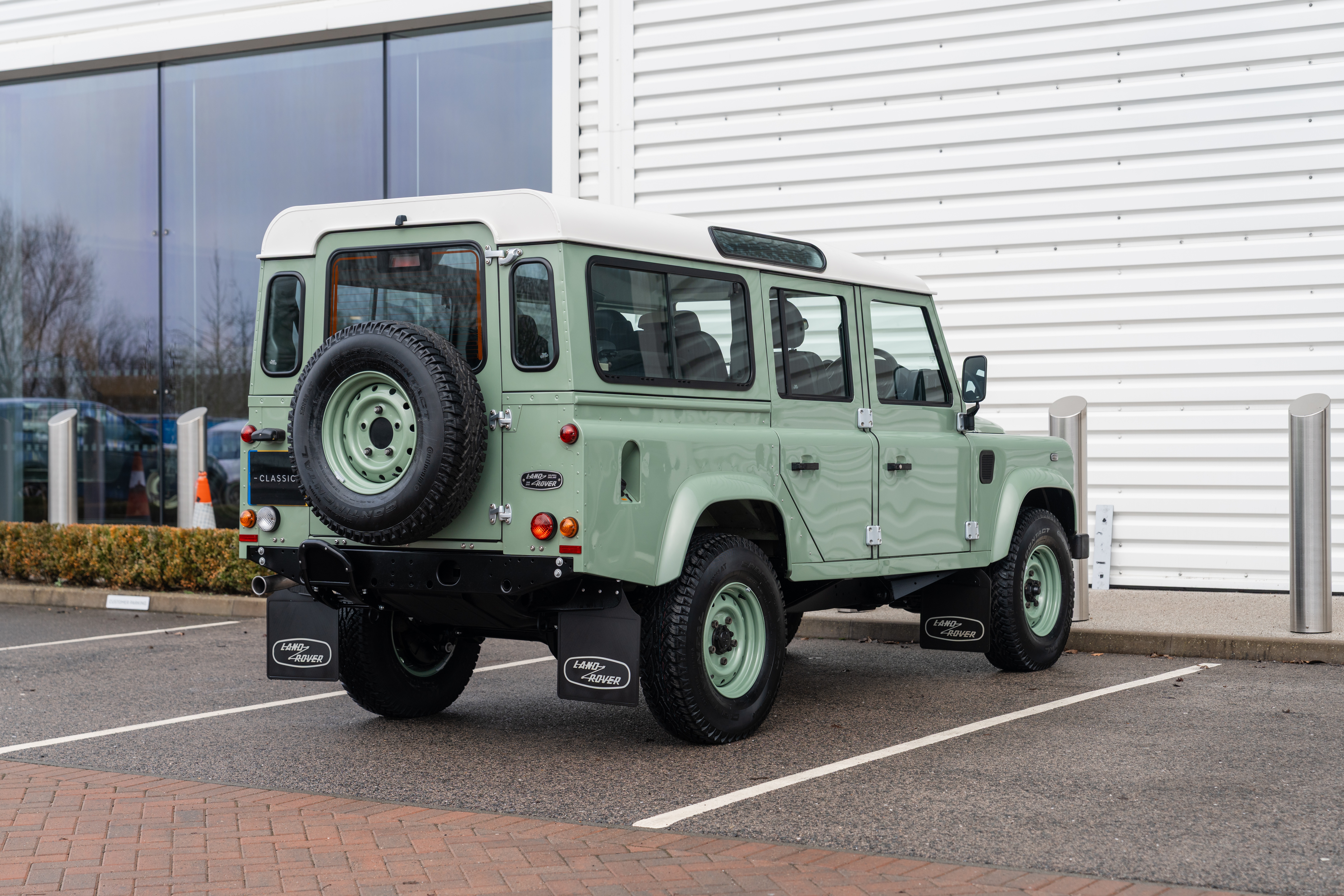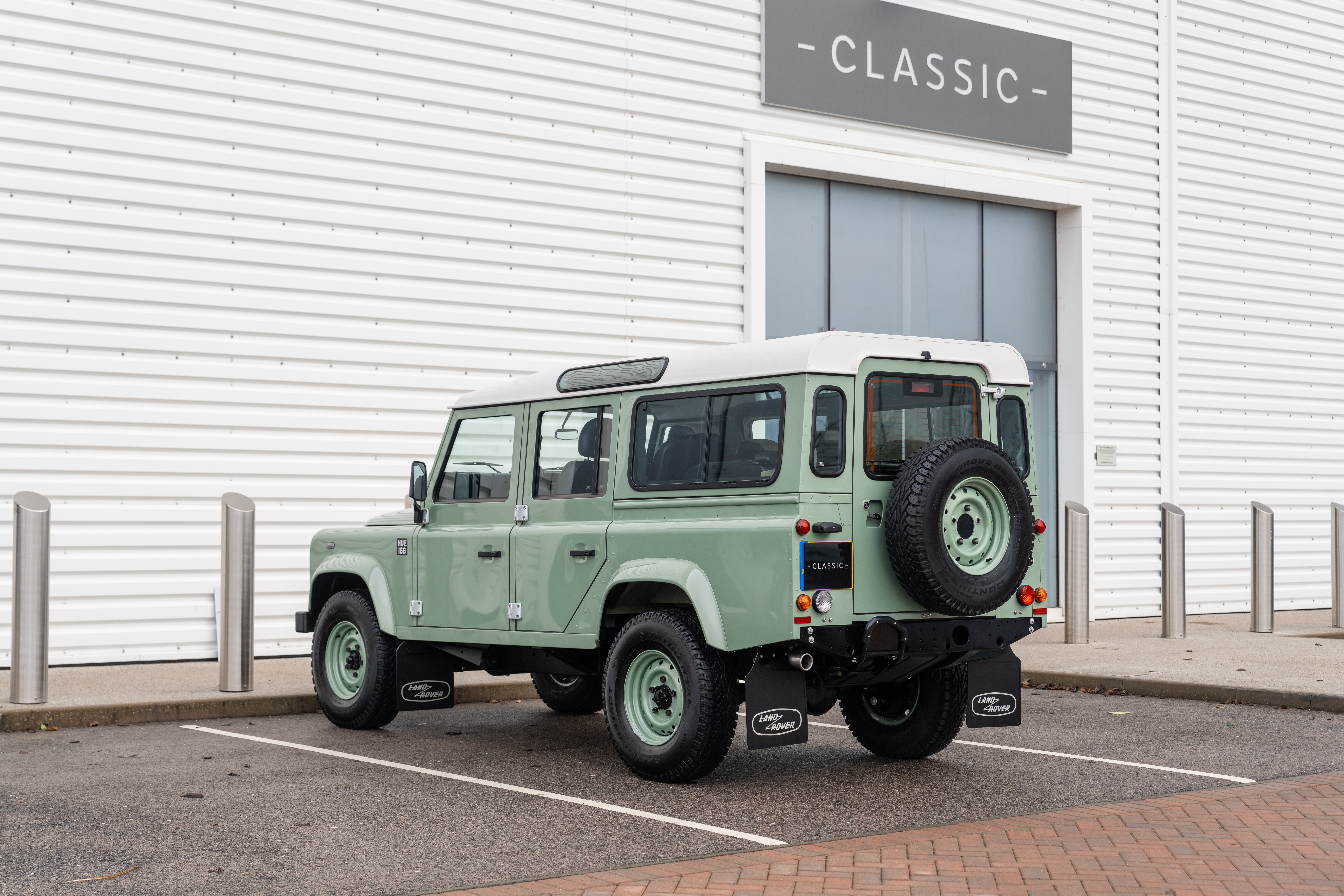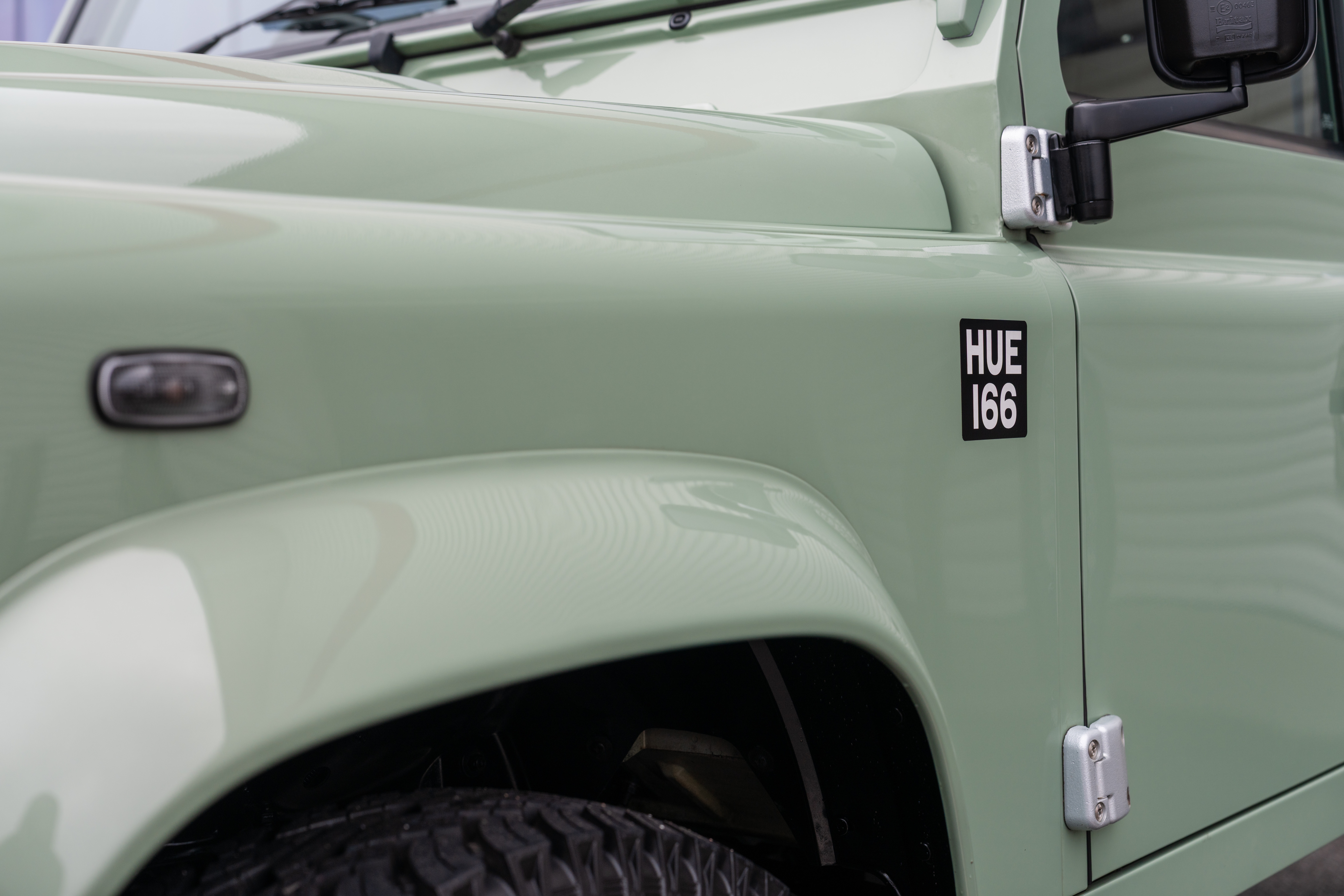 This particular vehicle is a 2015 110 that has covered just over ten thousand miles. It has had just one owner from new, and the car has spent a large part of the last ten years in storage whilst its owner has been working overseas. Now available to purchase directly from Land Rover Classic. The vehicle has been prepared for sale in Land Rover's own workshops and will be supplied with 12 months warranty and roadside assistance. The Land Rover also comes with a unique "HUE" numberplate.